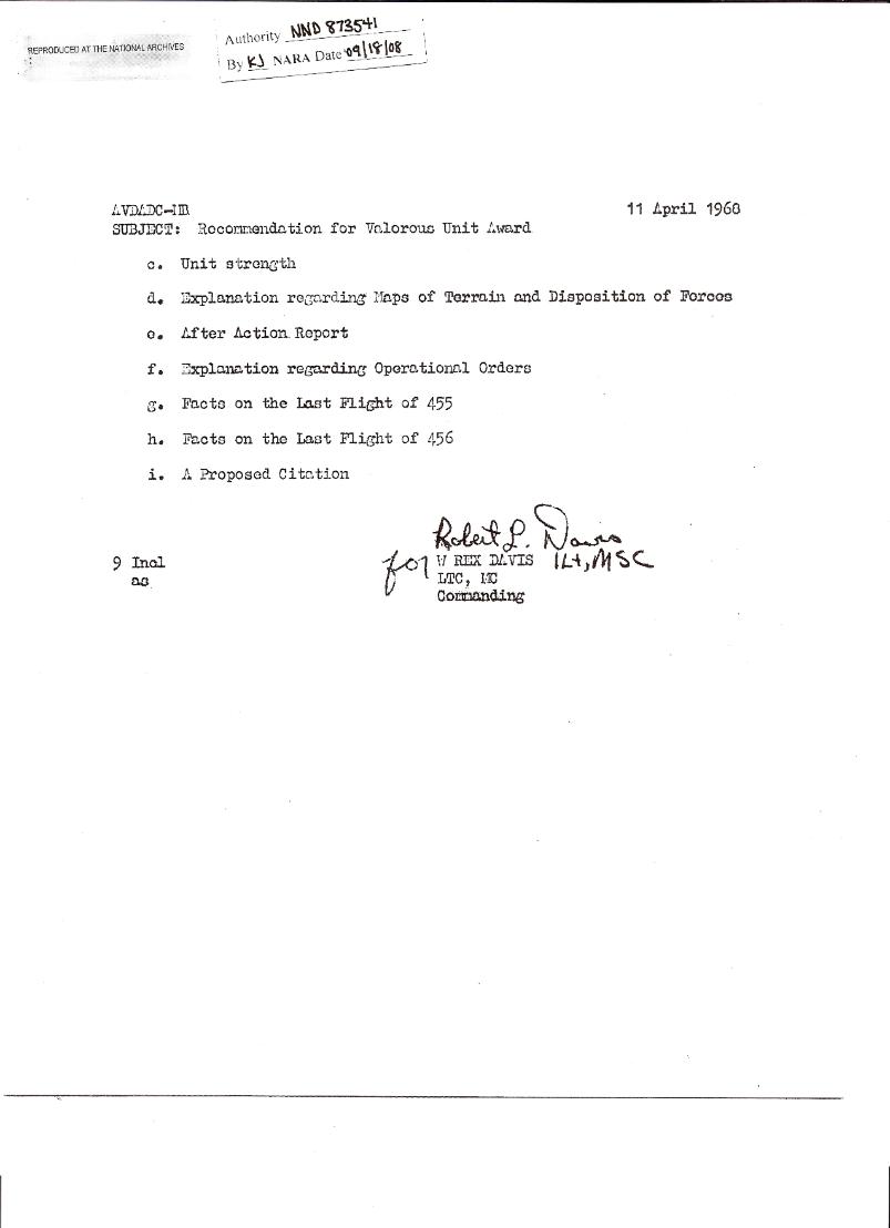 Recommendation for Valorous Unit Award