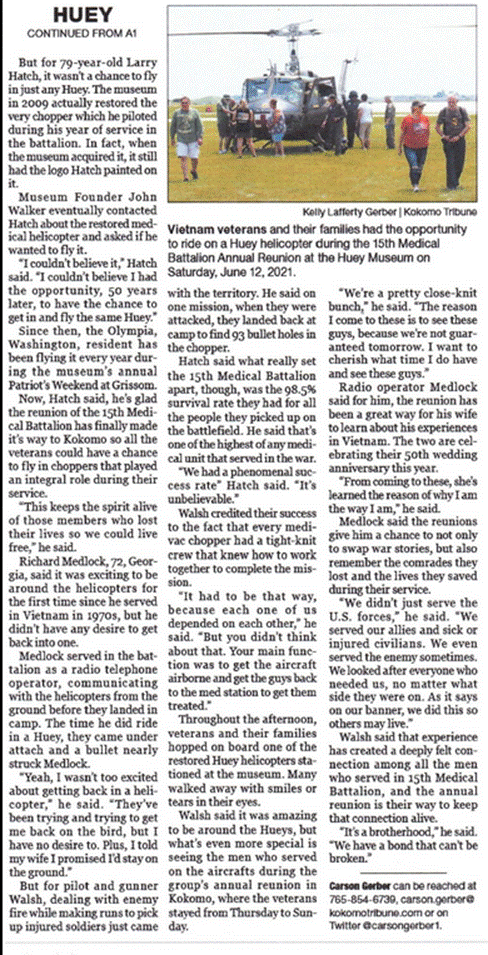 Peru, IN, to visit American Huey 369. Together with a Temporary Museum /
