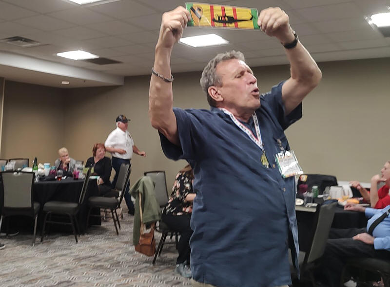 Auctioneer Calibro selling Medevac jacket won by Peggy Calibro